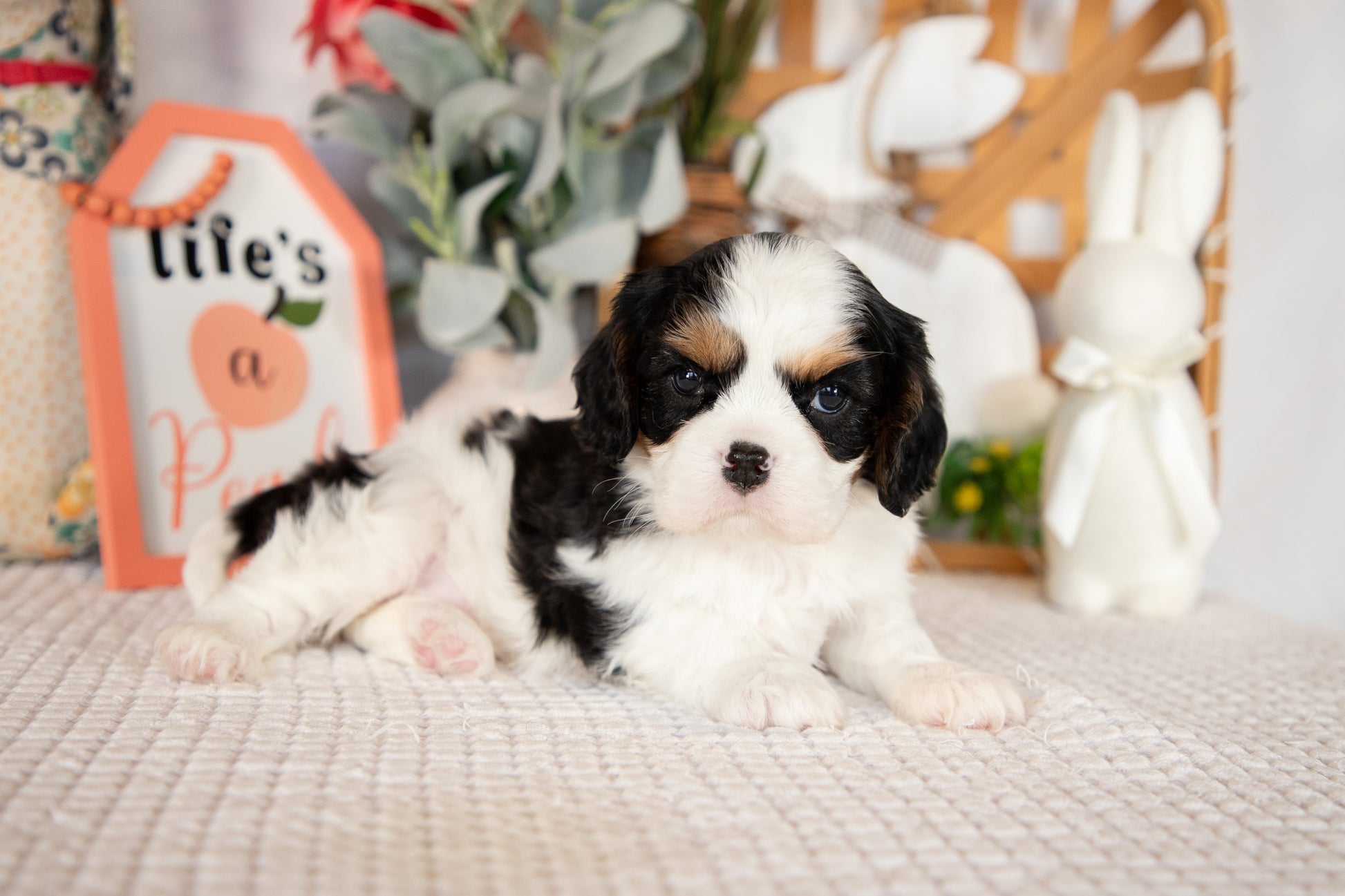 Meet Rosie, a gentle and affectionate Cavalier King Charles Spaniel female with a heart full of love. Known for their sweet temperament and friendly nature, Cavaliers make wonderful companions for families and individuals alike. Rosie embodies the breed's signature traits—she's eager to please, naturally sociable, and thrives on human companionship. Her calm demeanor and adaptability make her perfect for various living situations. Whether you're looking for a loyal lap dog or an active playmate, Rosie brings warmth and joy to any home. Cavalier King Charles Spaniels are renowned for their gentle disposition and make excellent emotional support animals. Rosie is ready to become your devoted friend and cherished family member.